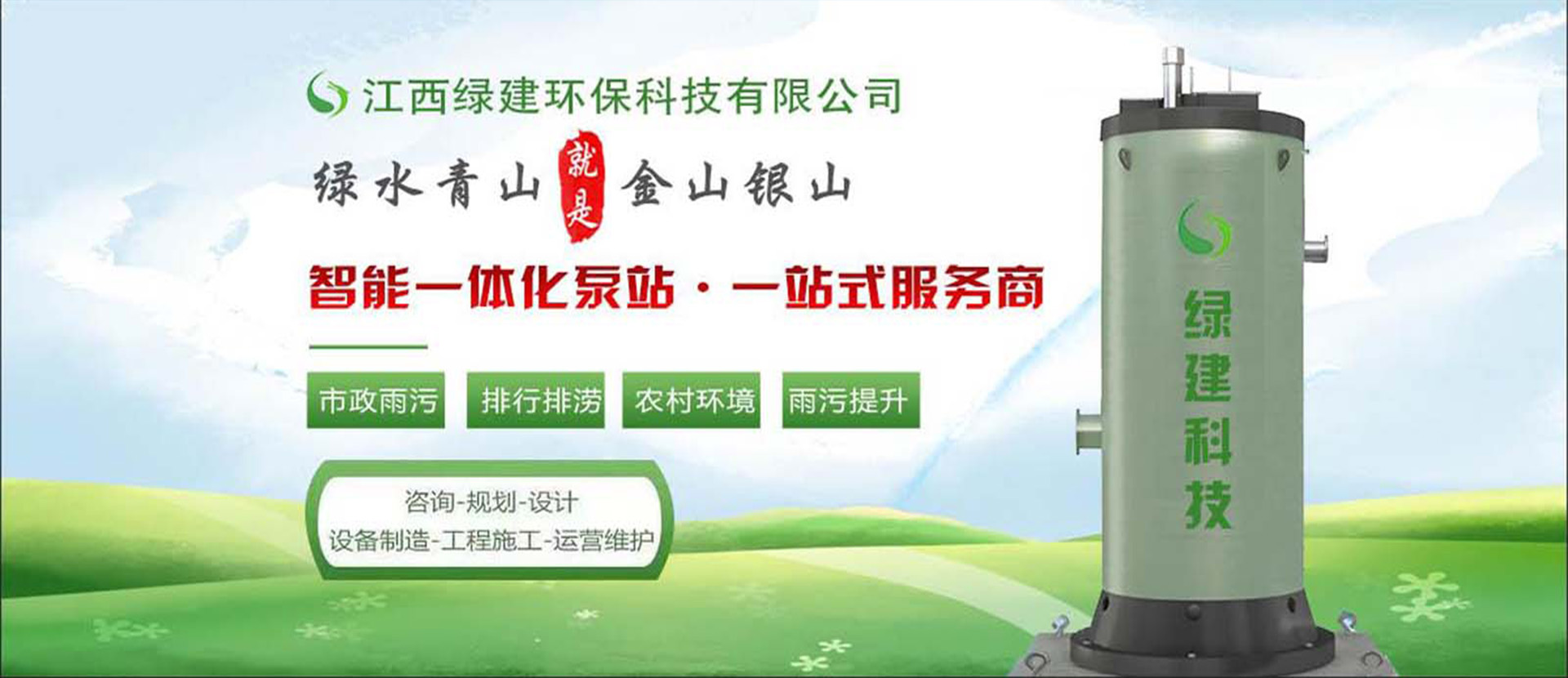 綠建科技擁有兩大事業(yè):綠建水處理設(shè)備事業(yè)和水環(huán)境治理事業(yè);綠建水處理設(shè)備事業(yè)擁有江西南昌、湖南長沙、廣東臺山、廣西南寧、浙江黃巖、河北衡水全國八大生產(chǎn)基地專業(yè)致力于分散式污水處理設(shè)備、衛(wèi)生院污水處理設(shè)備、MBR一體化污水處理設(shè)備、微動力一-體化污水處理設(shè)備、玻璃鋼生物凈化池、 玻璃鋼隔油池、一體化預(yù)制泵站、油水分離器、雨水收集系統(tǒng)及厭氧濕地- -體化系統(tǒng)和反滲透設(shè)備;水環(huán)境治理事業(yè)部專注于水環(huán)境治理和綠色生態(tài)文明建設(shè),對美麗鄉(xiāng)村建設(shè)、鄉(xiāng)鎮(zhèn)污水處理站、分散式無動力解決方案、餐飲廢水治理、食品廢水治理、景區(qū)污水治理、醫(yī)療廢水治理屠宰廢水處理、豬場糞污處理重、金屬廢水污染治理、電鍍廢水污染治理等其他水資源的治理和循環(huán)利用整體解決方策的研究與應(yīng)用。已成為改善水環(huán)境的定制化解決方案專家。